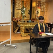 先ず最近目にする機会の増えた「中道」という言葉の持つ意味を尋ねました。その後、今日の『御文』(四帖目第八通)で説かれる八箇条の掟について一つ一つ見ていき、そこには蓮如上人の信心を獲得してほしいという志願があることを確かめました。また、『一念多念文意』では名(南無阿弥陀仏)が仏のはたらきをするという『論註』のことばを中心に見ました。今月は全体を通して「無義をもって義とす」という言葉がキーワードになりました。…