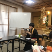 今回は『阿弥陀経』の中で親鸞聖人が特に着目している、「執持名号」「一心不乱」といった言葉が出てくる箇所について学びました。「執持」という心堅牢にただ念仏申すという姿はとても素晴らしい姿ではあるが、多善根の念仏を一心不乱に極楽に生まれる為に、言い換えれば善根を積むような心から称える念仏を、親鸞聖人は自力の念仏と捉えました。ただ念仏の教えを通して、自身の信心について深く考えることが大切なのだと確かめました。